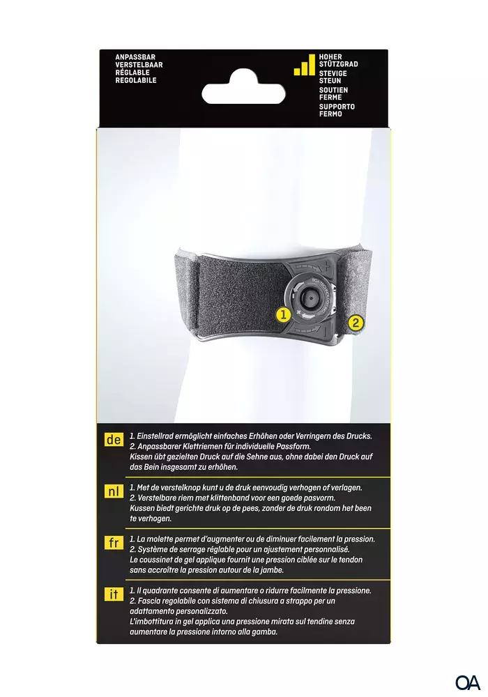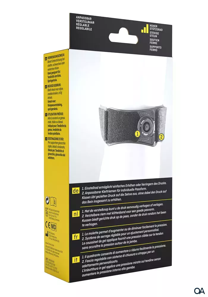 - Einstellrad ermöglicht einfach anpassbaren, punktgenauen Druck auf das schmerzende Knie