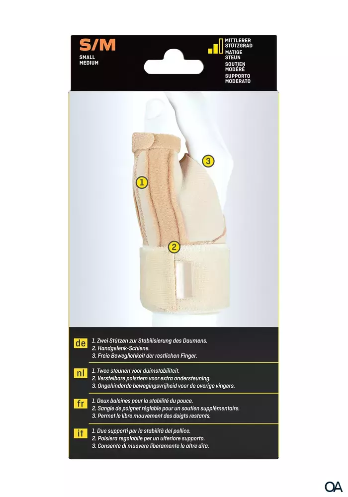 - Empfohlene Anwendung: Unterstützung von steifen, schwachen oder verletzten Daumen