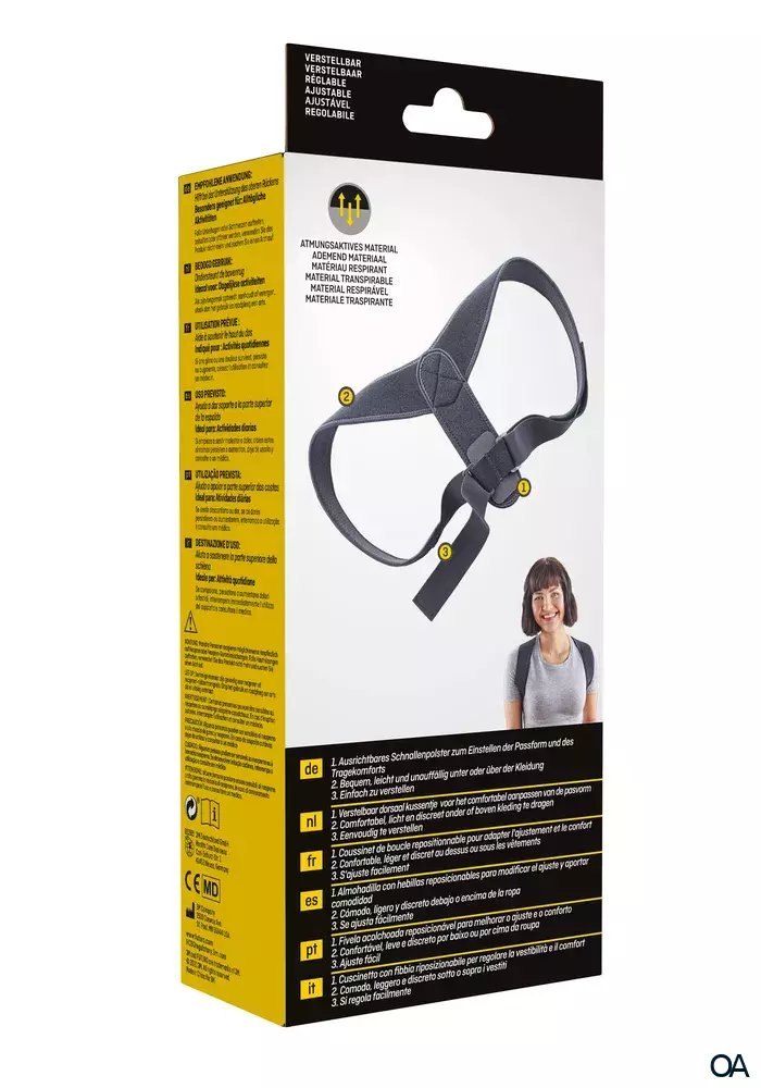 Es ist dazu konzipiert, eine gute Körperhaltung zu fördern, indem es Ihre Schultern sanft nach hinten zieht. Hergestellt aus leichten, atmungsaktiven Materialien, verschwindet dieses Produkt praktisch unter der Kleidung.