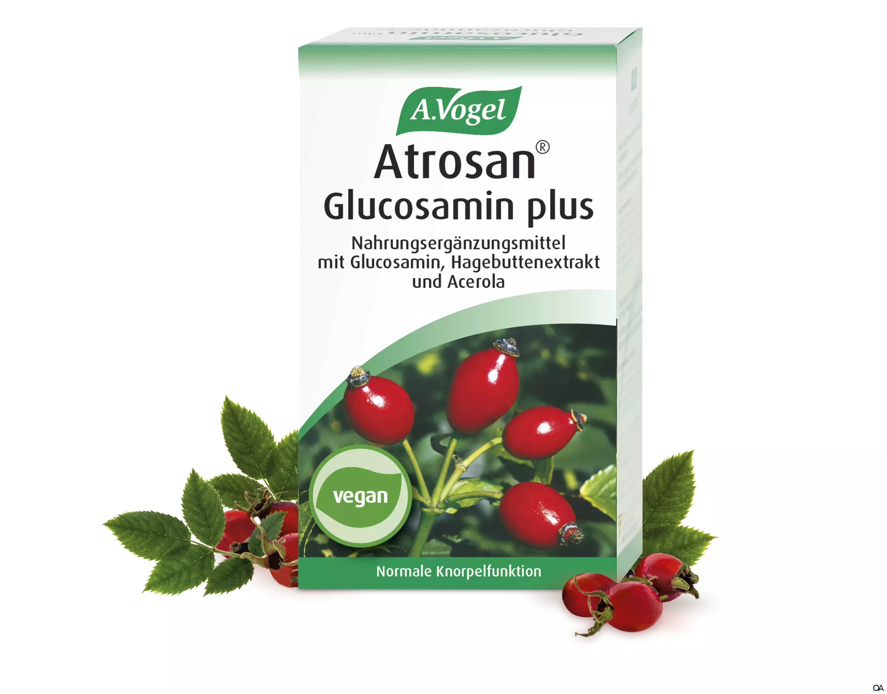 A.Vogel Glucosamin Plus Tabletten sind ein Nahrungsergänzungsmittel mit Glucosamin, Hagebuttenextrakt und Acerola, für eine normale Knorpelfunktion, Kollagenbildung und Produktion von Gelenksflüssigkeit. Für mehr Beweglichkeit bis ins hohe Alter.