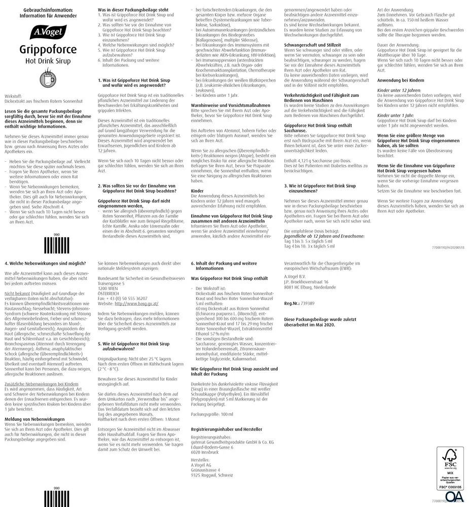A.Vogel Grippoforce Hot Drink Sirup ist ein traditionelles