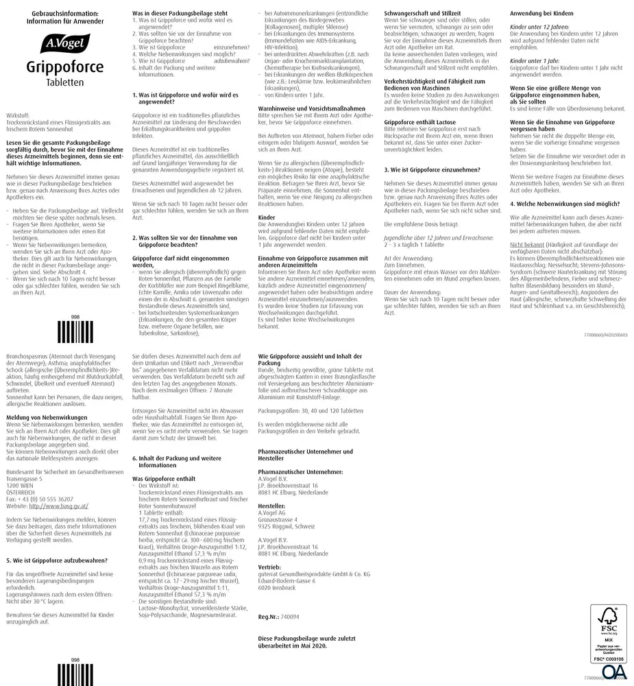 - Art der Anwendung: Zum Einnehmen. Grippoforce mit etwas Wasser vor den Mahlzeiten einnehmen oder im Mund zergehen lassen.