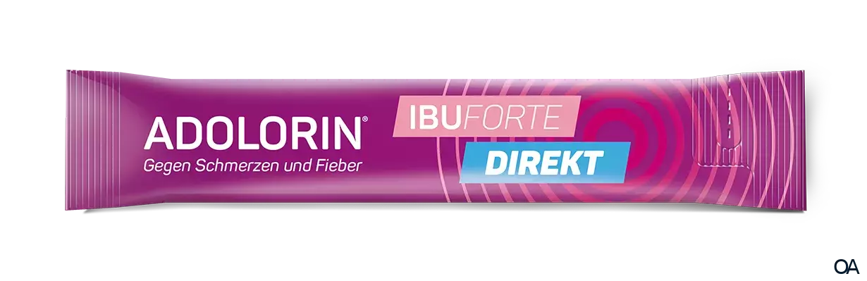 - Den Inhalt eines Beutels ADOLORIN Ibuforte DIREKT 400 mg Suspension zum Einnehmen direkt in den Mund drücken und bei Bedarf ein Glas Wasser nachtrinken.
