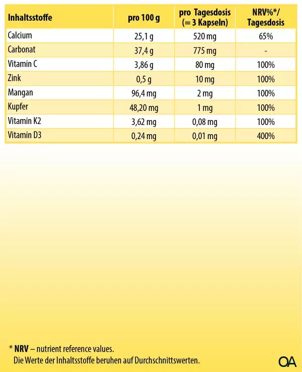 - Calcium wird für die Erhaltung normaler Knochen benötigt.