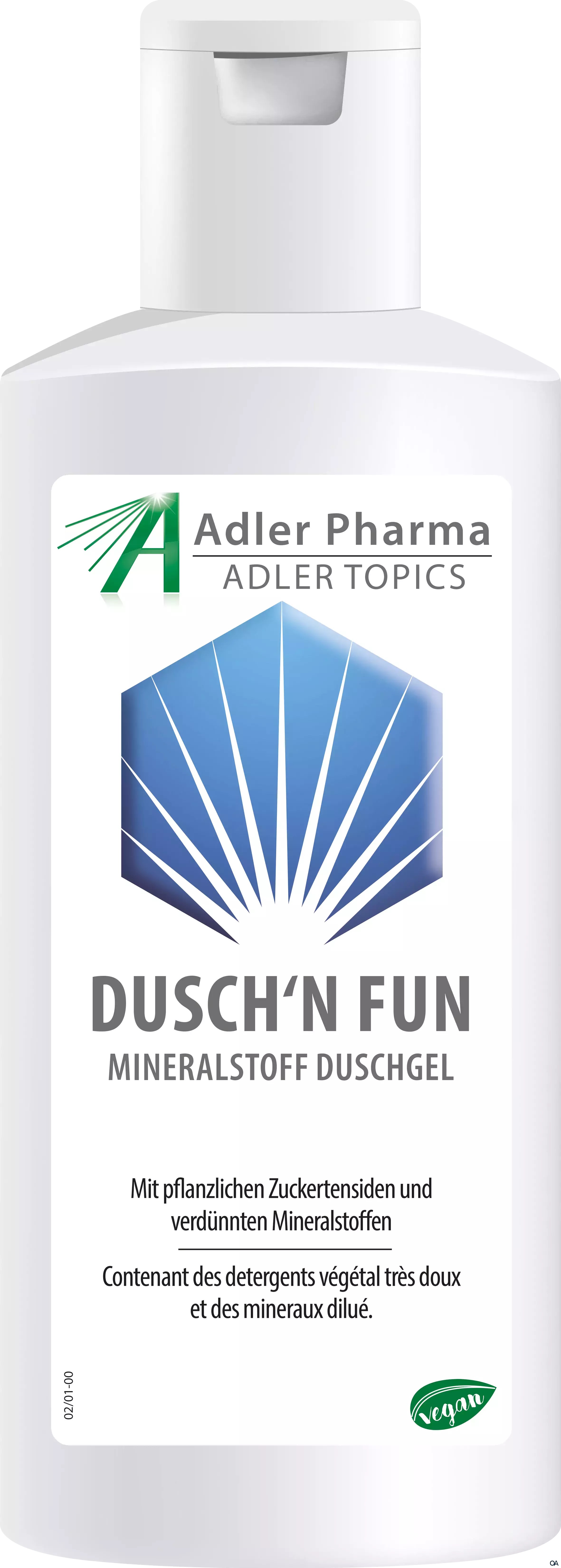Das Adler Topics Dusch' n Fun ist ein Duschgel mit milden pflanzlichen Zuckertensiden (Kokosglucoside) und hochverdünnten Mineralstoffen. Bestens zur täglichen Dusche und Haarpflege geeignet.