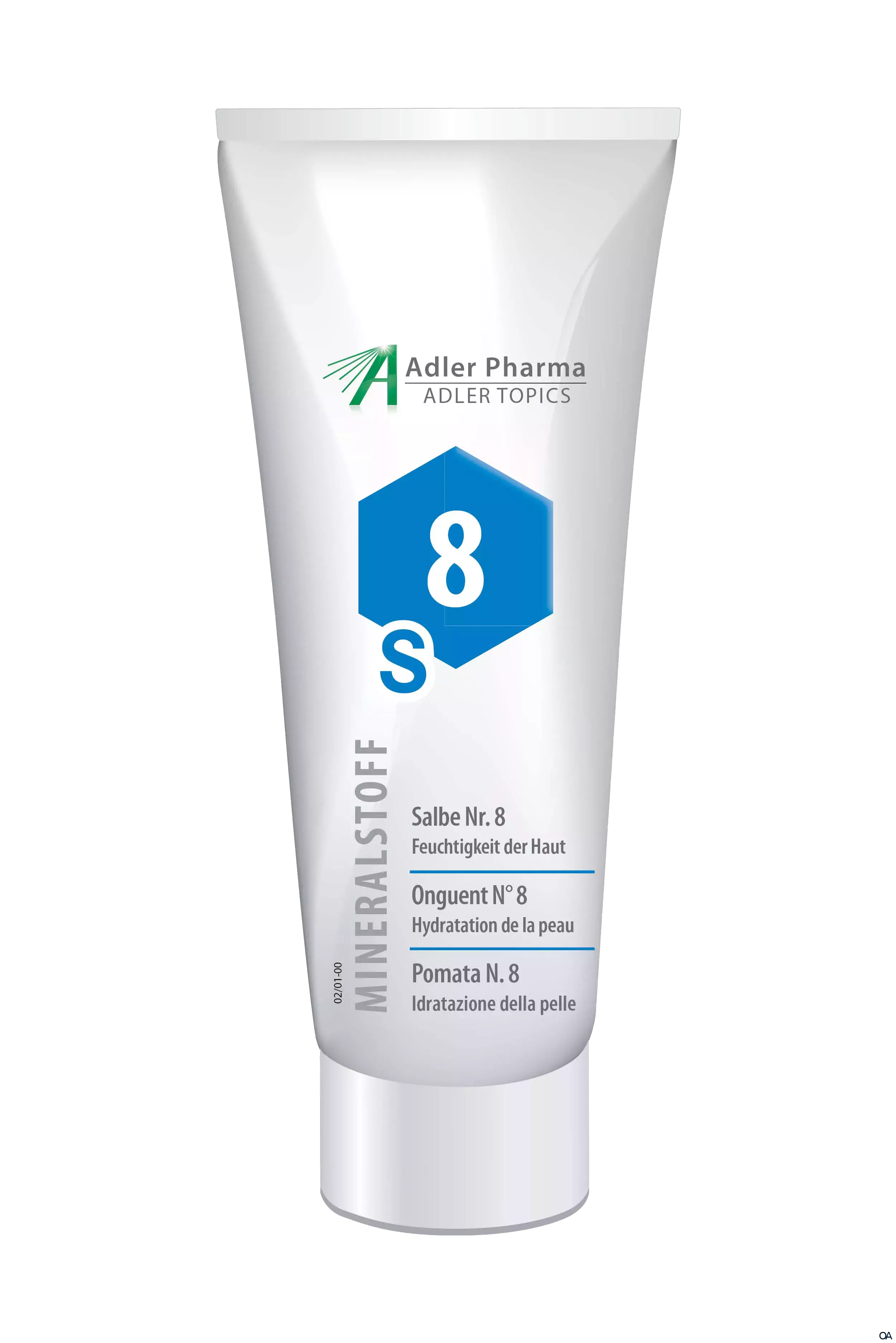 Die Adler Topics Salbe Nr.8 sorgt für Feuchtigkeit in der Haut. Dient zur Anwendung bei großporiger, feuchtigkeitsarmer Haut.