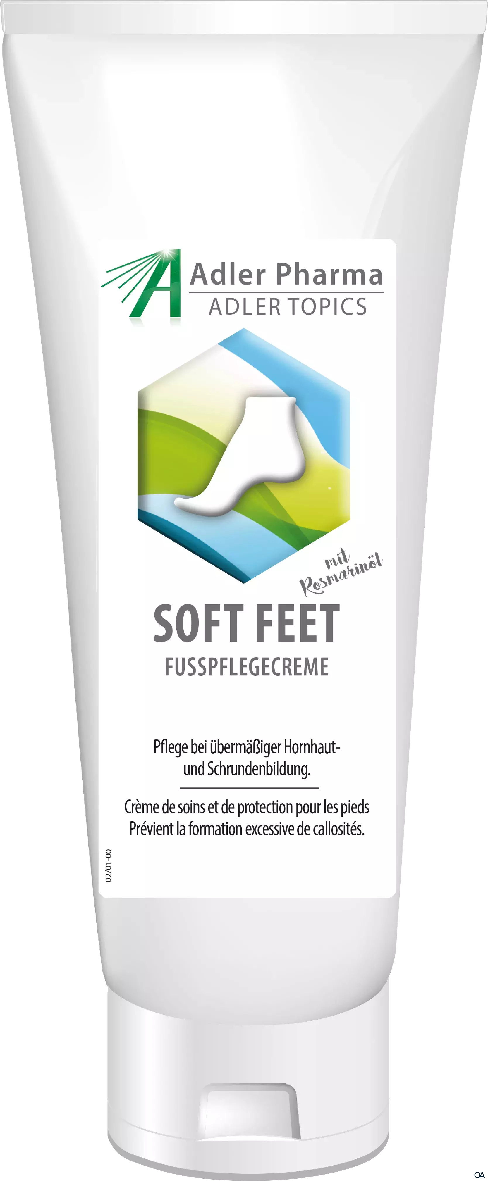 Die Adler Topics Soft Feet ist eine Fusspflegecreme zur Pflege bei übermäßiger Hornhaut- und Schrundenbildung. Mit Rosmarinöl.