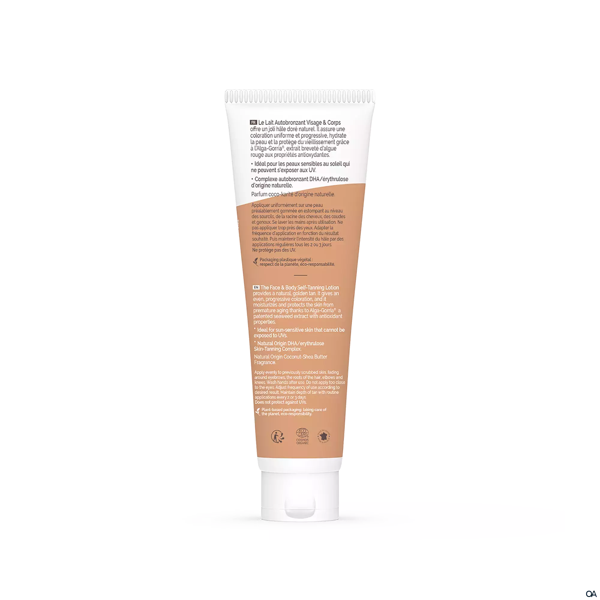 Die selbstbräunende Gesichts- und Körpermilch schenkt eine schöne goldene Bräune, strahelnd und natürlich. Sie sorgt für eine gleichmäßige und stufenlose Färbung, spendet der Haut Feuchtigkeit und schützt sie vorvorzeitiger Hautalterung dank Alga-Gorria®, einem patentierten Extrakt aus Rotalgen mit antioxidativen Eigenschaften.