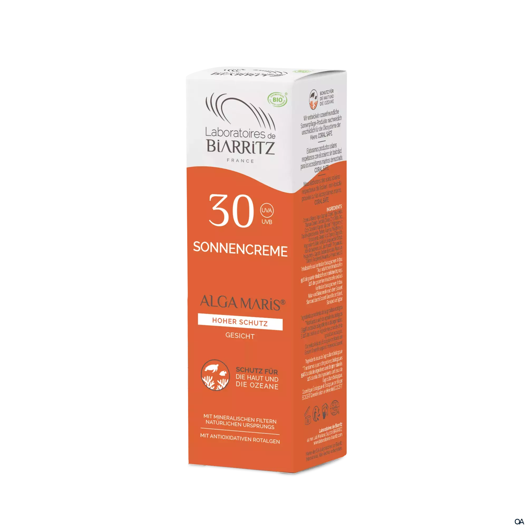 Wirksamer Sonnenschutz und gleichzeitig intensiveFeuchtigkeitspflege? Das kann unsere ALGA MARIS Sonnencreme fürs Gesicht mitLichtschutzfaktor 30. Sie steht für einen effizienten, natürlichen Schutz vorUV-Strahlung: Ihre sehr gut verträglichen, mineralischen Filter schützen dieHaut vor UVA- und UVB-Strahlung und der patentierte, antioxidative RotalgenextraktAlga-Gorria® neutralisiert freie Radikale und beugt somit Zell und Hautschädensowie vorzeitiger Hautalterung vor. Die nicht-fettende Textur versorgt die Hautmit Feuchtigkeit und mattiert sie gleichzeitig. Sie verfeinert das Hautbild undmacht den Teint zart und geschmeidig. Die Bio-zertifizierte Formulierung derALGA MARIS Sonnencreme besteht aus Inhaltsstoffen natürlichen Ursprungs.