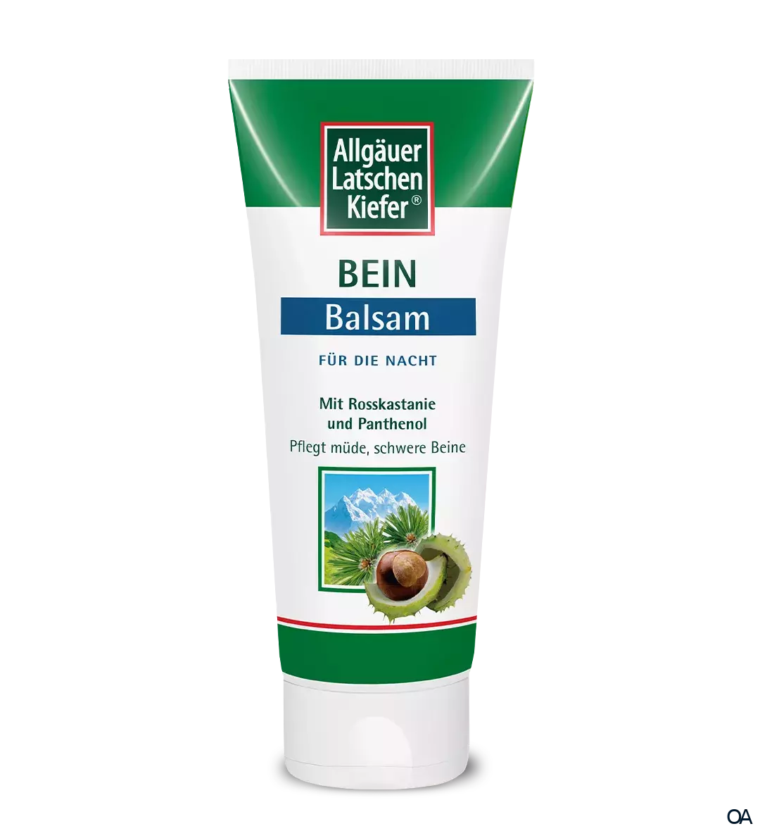 Allgäuer Latschenkiefer® Bein Balsam für die Nacht mit Rosskastanie und Panthenol. Zur intensiven Pflege der Haut und zur Unterstützung einer Massage bei müden, schweren Beinen.