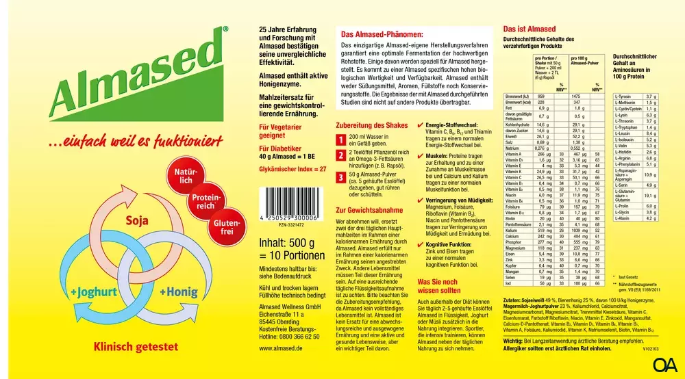 - Bitte beachten Sie die Zubereitungsempfehlung, da Almased® kein vollständiges Lebensmittel ist.