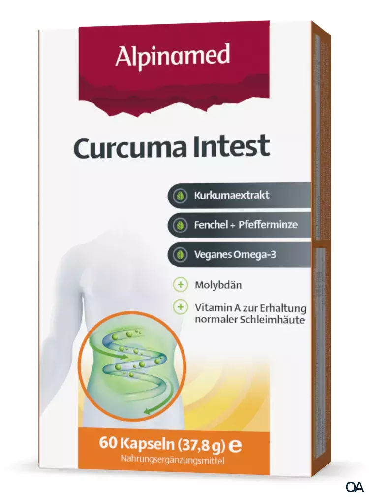- Im europäischen Raum hat Kurkuma eine lange Tradition in der Anwendung rund um das Thema Verdauung. Alpinamed® Curcuma Intest bietet natürliche Unterstützung für die Verdauung und zur langfristigen Darmpflege. Es verwöhnt den Verdauungstrakt mit Naturstoffen aus Kurkuma, Fenchel und Pfefferminze sowie veganen Omega-3 Fettsäuren aus Mikroalgenöl. Ergänzt werden die Pflanzenstoffe mit Molybdän und Vitamin A zur Pflege der Darmschleimhaut.