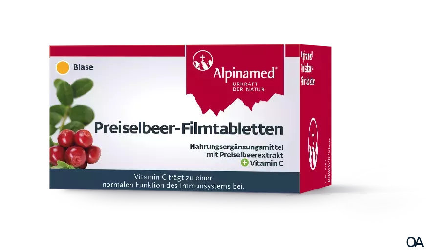 Unterstützung gegen das lästige Leiden gibt es aus der Apotheke in Form von Alpinamed® Preiselbeer Filmtabletten mit Vitamin C. Die praktischen kleinen Filmtabletten sind schnell griffbereit und können dezent und geschmacksneutral mit Wasser eingenommen werden. Ideal für unterwegs, zu Hause und den Arbeitsplatz.