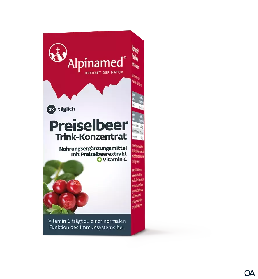 Unterstützung gegen das lästige Leiden gibt es aus der Apotheke in Form von Alpinamed® Preiselbeer Trink-Konzentrat. Das Trink-Konzentrat unterstützt die Blase mit einer hohen Dosis des Pflanzenstoffs Proanthocyanidine und immunstärkendem Vitamin C. Es schmeckt fruchtig mild und ist - neben Alpinamed® Preiselbeer Direkt – eine Alternative für geschmacksempfindliche Personen. Es kann auch in Müsli, Joghurt, Brei oder in einem Milchshake eingerührt werden und eignet sich besonders für Kinder ab 2 Jahren.