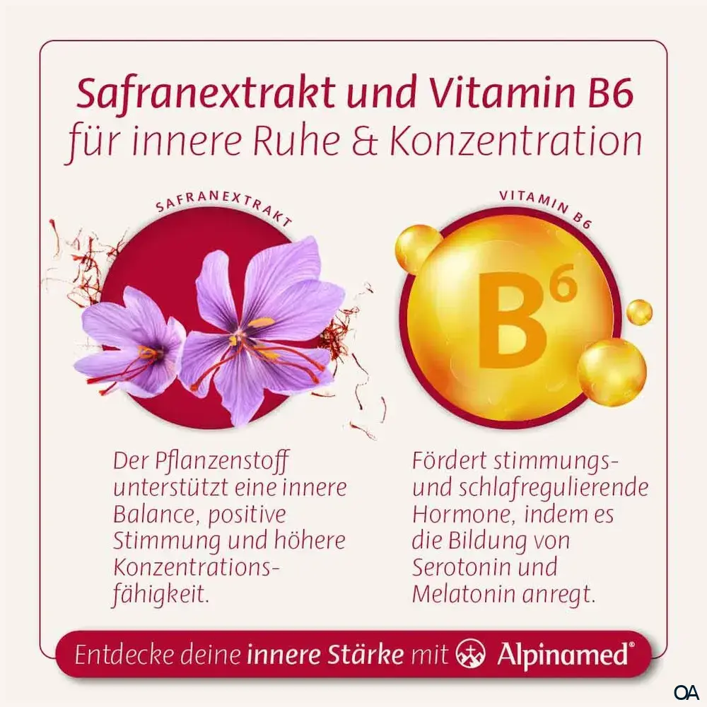 - Nährwerte pro Tagesdosis: Alpinamed® Safran Kids Gummies enthalten 9 mg Safranextrakt und 0,63 mg Vitamin B6 in einer maximalen Tagesdosis von 3 Gummies. Ein Gummy beinhaltet jeweils die Inhaltsstoffe aus 8 handverlesenen Safranfäden.