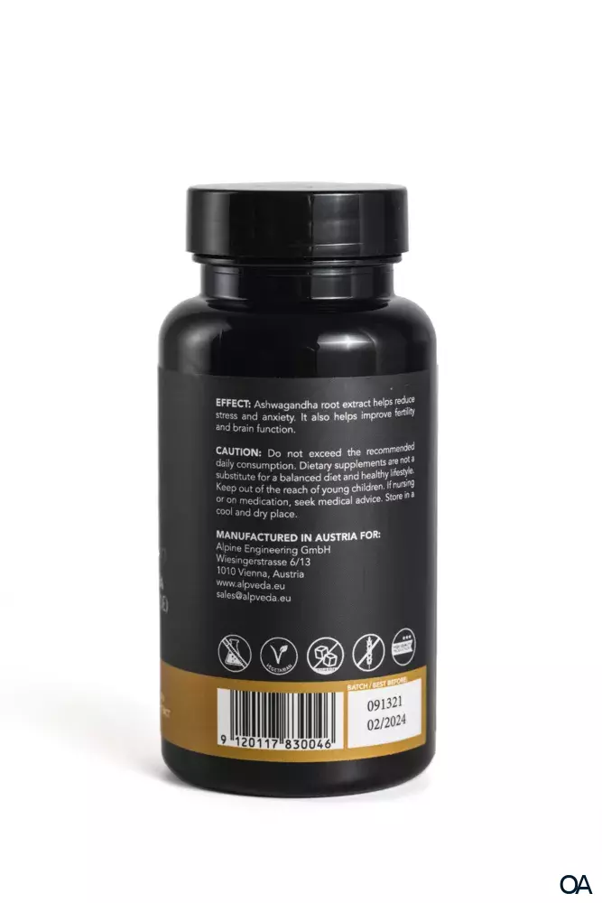 - Alpveda Ashwagandha-Extrakt-Kapseln sind eine sehr sichere Form von Ashwagandha mit geringer Toxizität, mit Glycowithanolid-Konzentrationen von 5% und vernachlässigbaren Konzentrationen von Withaferin A.