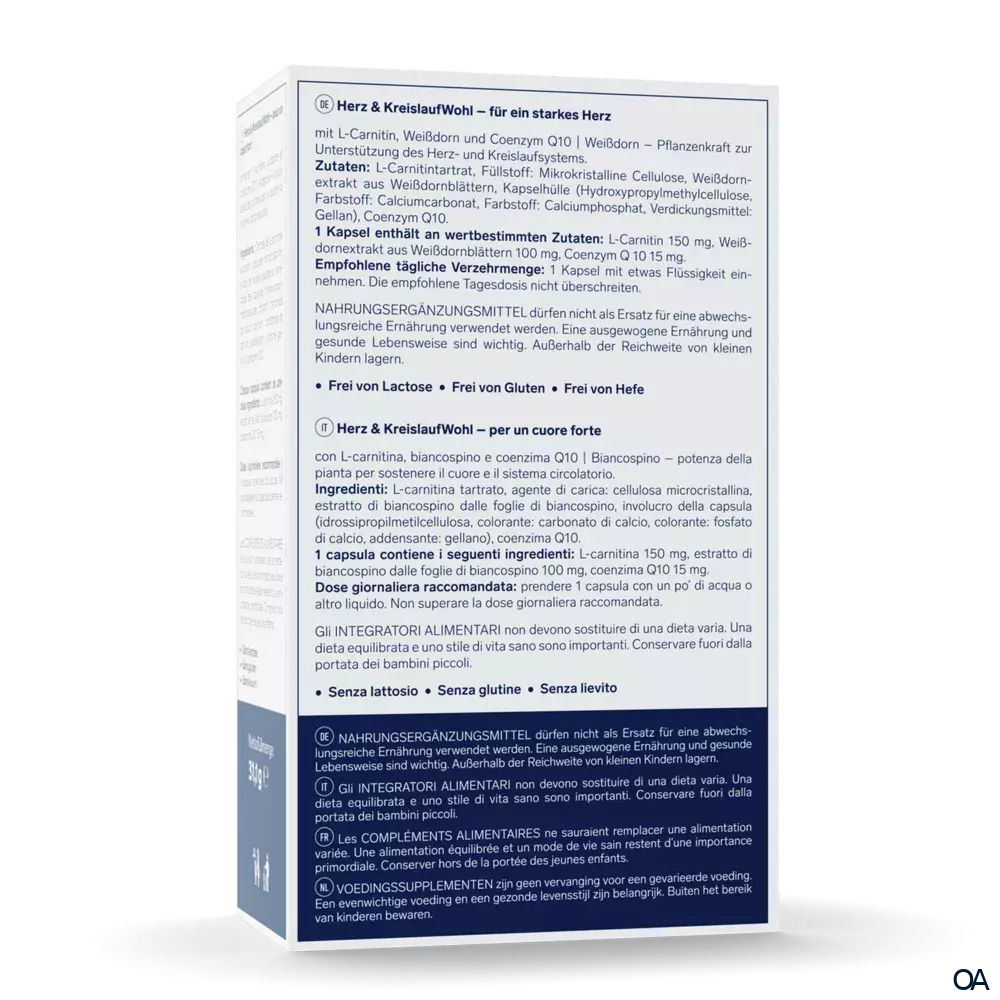 Herz & KreislaufWohl ist ein Nahrungsergänzungsmittel, das auf natürlicher Basis mit Weißdorn, L-Carnitin und Coenzym Q10 Ihren Kreislauf stärkt und Sie im Alltag belastbarer macht.