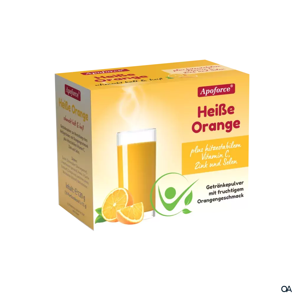 Apoforce® Heiße Orange ist ein Getränkepulver zur Herstellung eines Heißgetränkes mit Orangengeschmack plus hitzestabilem Vitamin C, Zink und Selen.