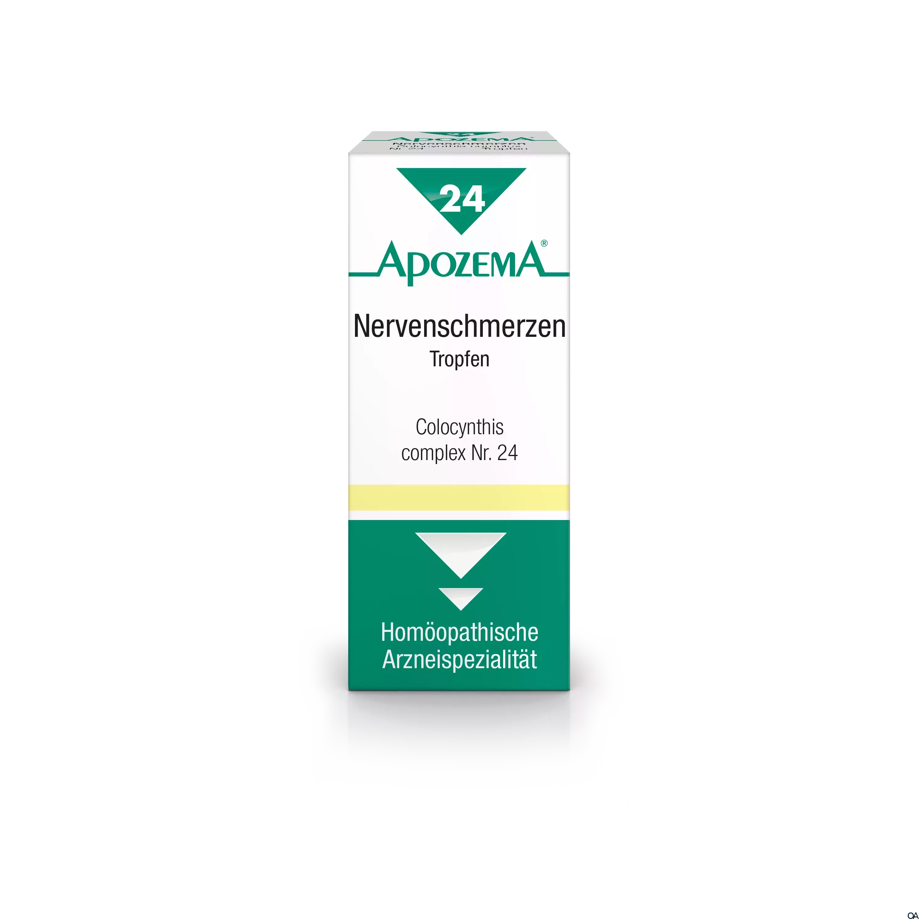 Die Apozema® Nervenschmerzen Colocynthis complex Nr. 24 Tropfen sind eine homöopathische Arzneispezialität zur Einnahme bei rheumatische Beschwerden wie Muskel- und Gelenkschmerzen, Gicht, Nervenschmerzen auch im Kopfbereich, Muskelkater, Hexenschuss.
