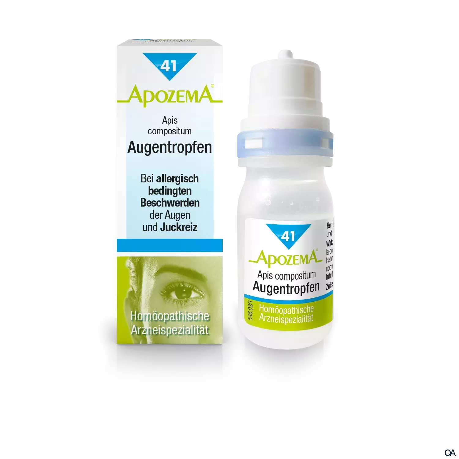 Die Apozema® Nr. 41 Apis compositum Augentropfen sind eine homöopathische Arzneispezialität zur Anwendung bei allergisch bedingten Beschwerden der Augen und Juckreiz.
