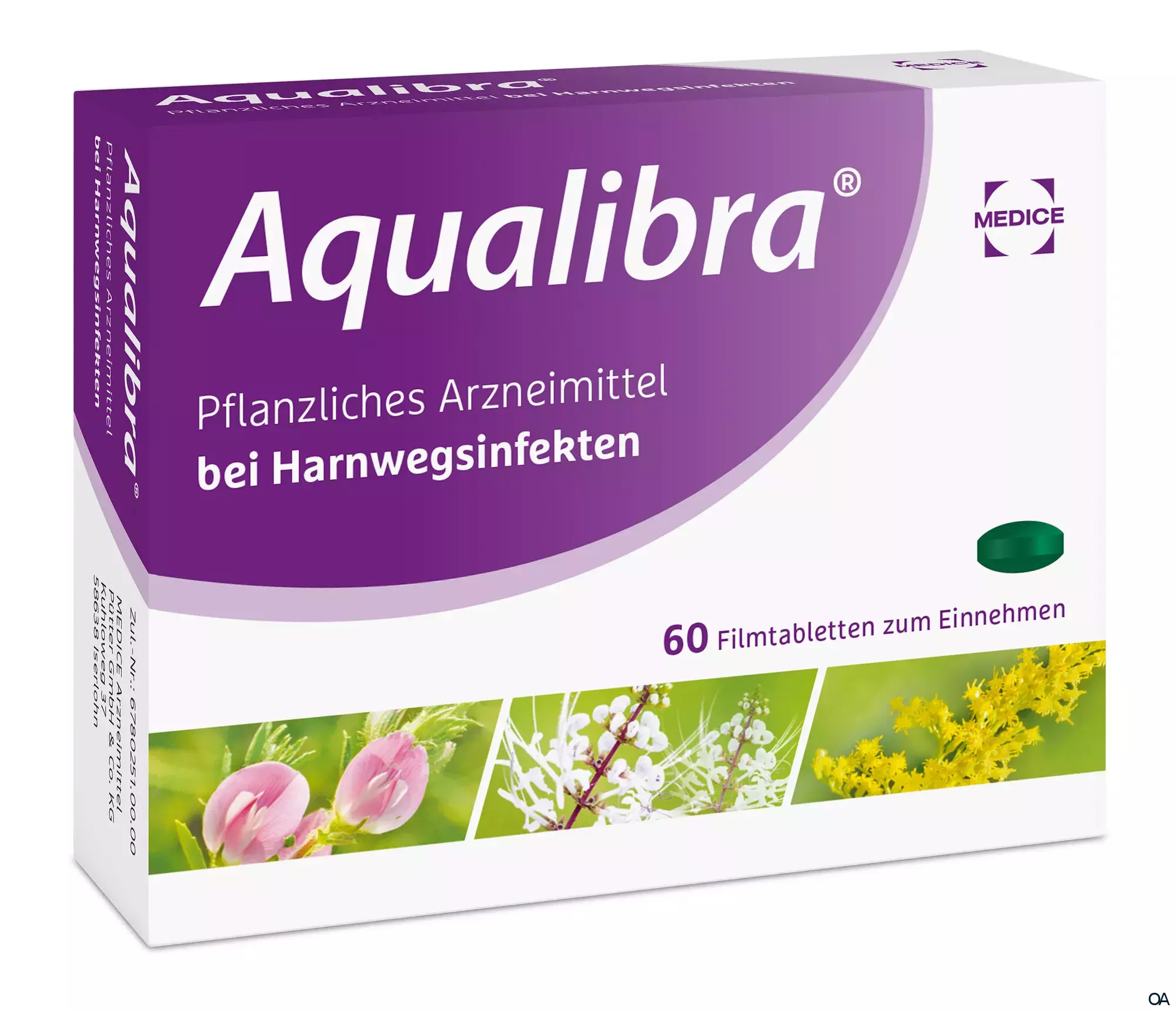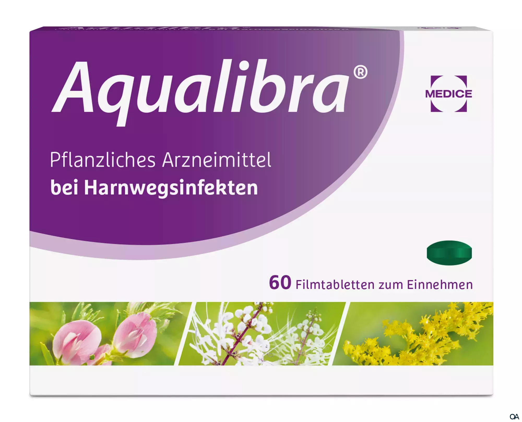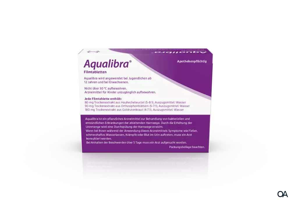 Aqualibra® Filmtabletten ist ein pflanzliches Arzneimittel mit Hauhechelwurzel, Orthosiphonblätter und Goldrutenkraut zur Anwendung bei Harnwegsinfekten. Die Pflanzenkombination wirkt schmerzlindernd, entzündungshemmend und gründlich gegen Bakterien.