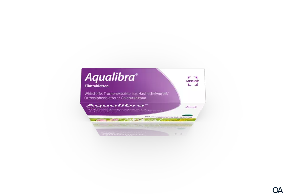 - Erwachsene und Jugendliche ab 12 Jahren nehmen 3x täglich 2 Aqualibra® Filmtabletten mit reichlich Flüssigkeit ein. Die Filmtabletten werden unzerkaut geschluckt. Die Einnahme kann zu den Mahlzeiten oder unabhängig davon erfolgen. In jedem Fall ist Aqualibra® mit reichlich Flüssigkeit einzunehmen. Auch ist während der gesamten Behandlungsdauer auf reichliche Flüssigkeitszufuhr (mindestens 2 Liter/Tag) zu achten.