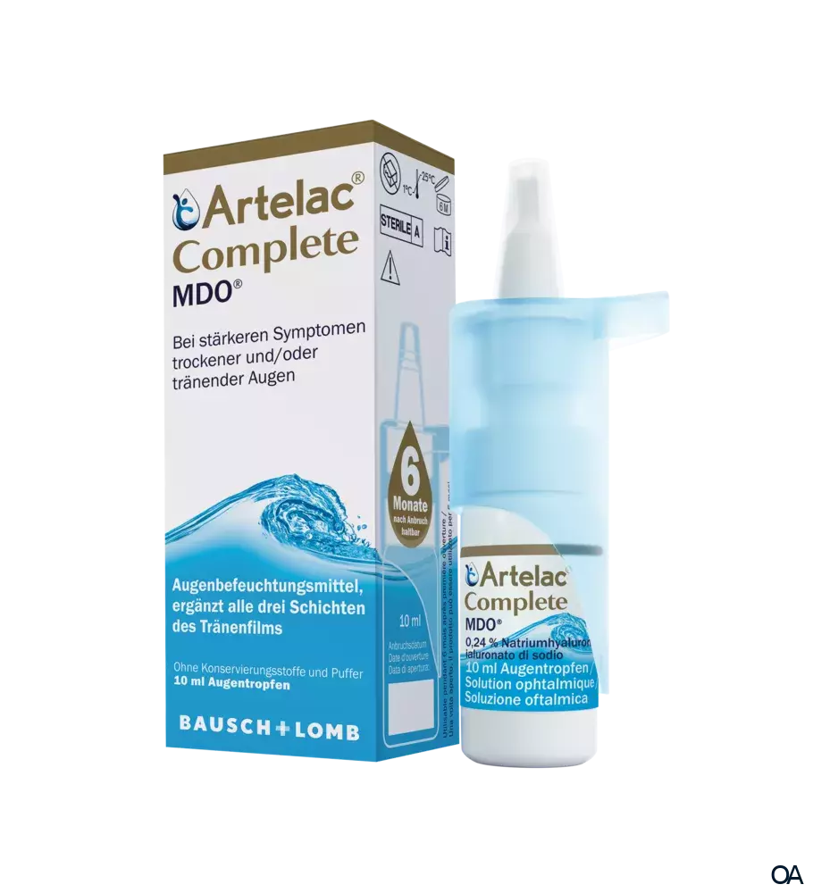 - Die unkonservierten Ein-Dosis-Ophtiolen Artelac® Complete EDO® sind nach einmaligem Gebrauch zu entsorgen. Die Pumpflasche von Artelac® Complete MDO® ermöglicht eine intuitive Handhabung sowie sichere Anwendung. Sie ist nach Anbruch 6 Monate verwendbar.