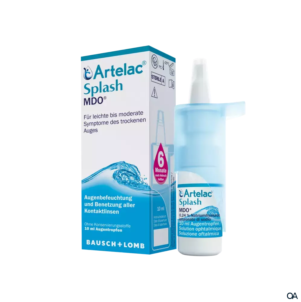 - Artelac® Splash MDO® ist sechs Monate nach Anbruch haltbar. Bei Artelac® Splash EDO® sind die Ein-Dosis-Ophtiolen nach einmaligem Gebrauch zu entsorgen