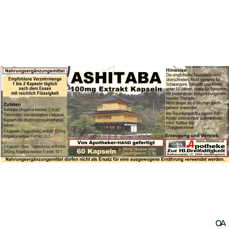 - Zusammensetzung pro Tagesdosis (2 Kapseln): 200mg Angelica keiskei Extrakt 10:1.