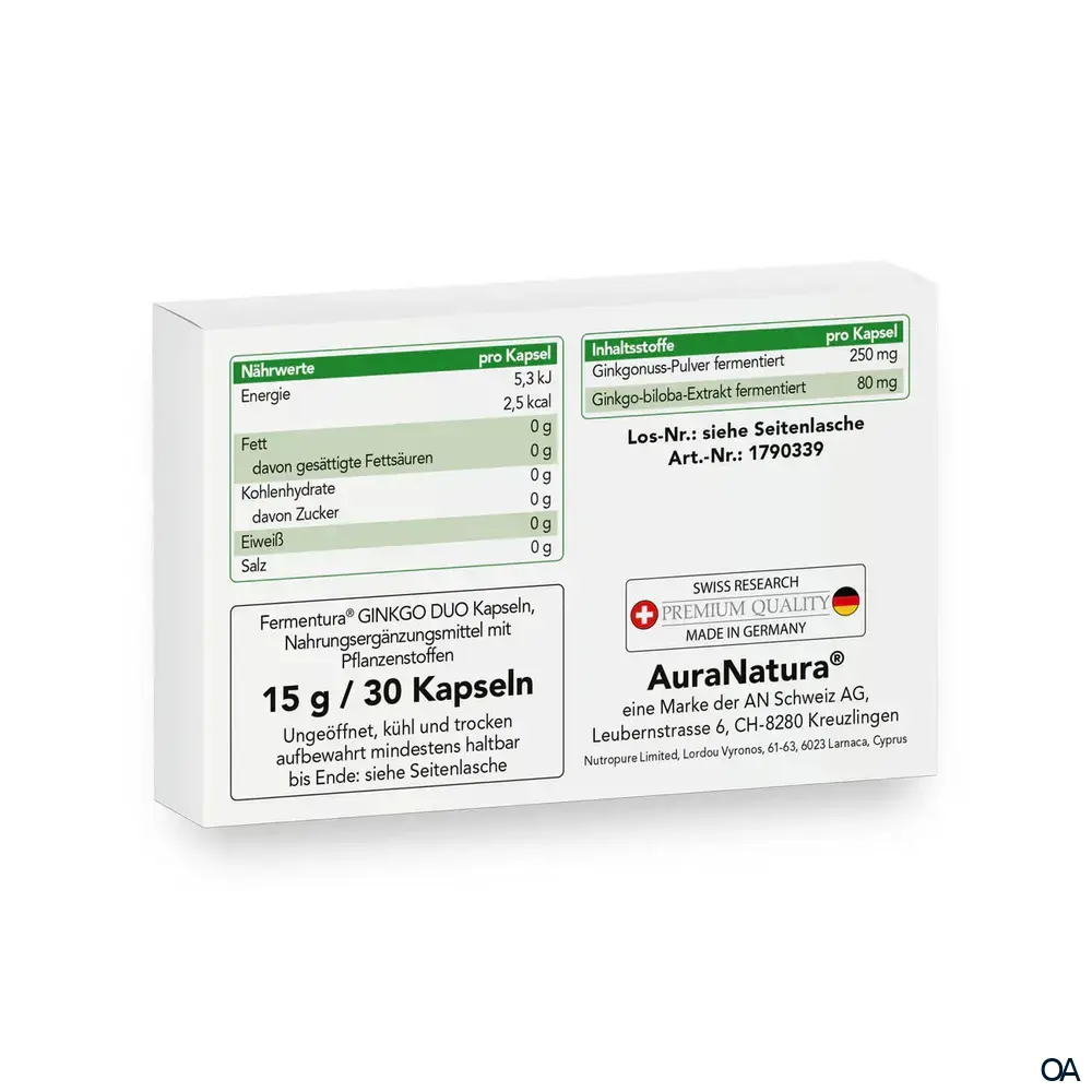Die AuraNatura® Fermentura® Ginkgo Duo Kapseln sind ein Nahrungsergänzungsmittel mit fermentiertem Ginkgoblatt und fermentierter Ginkgonuss.