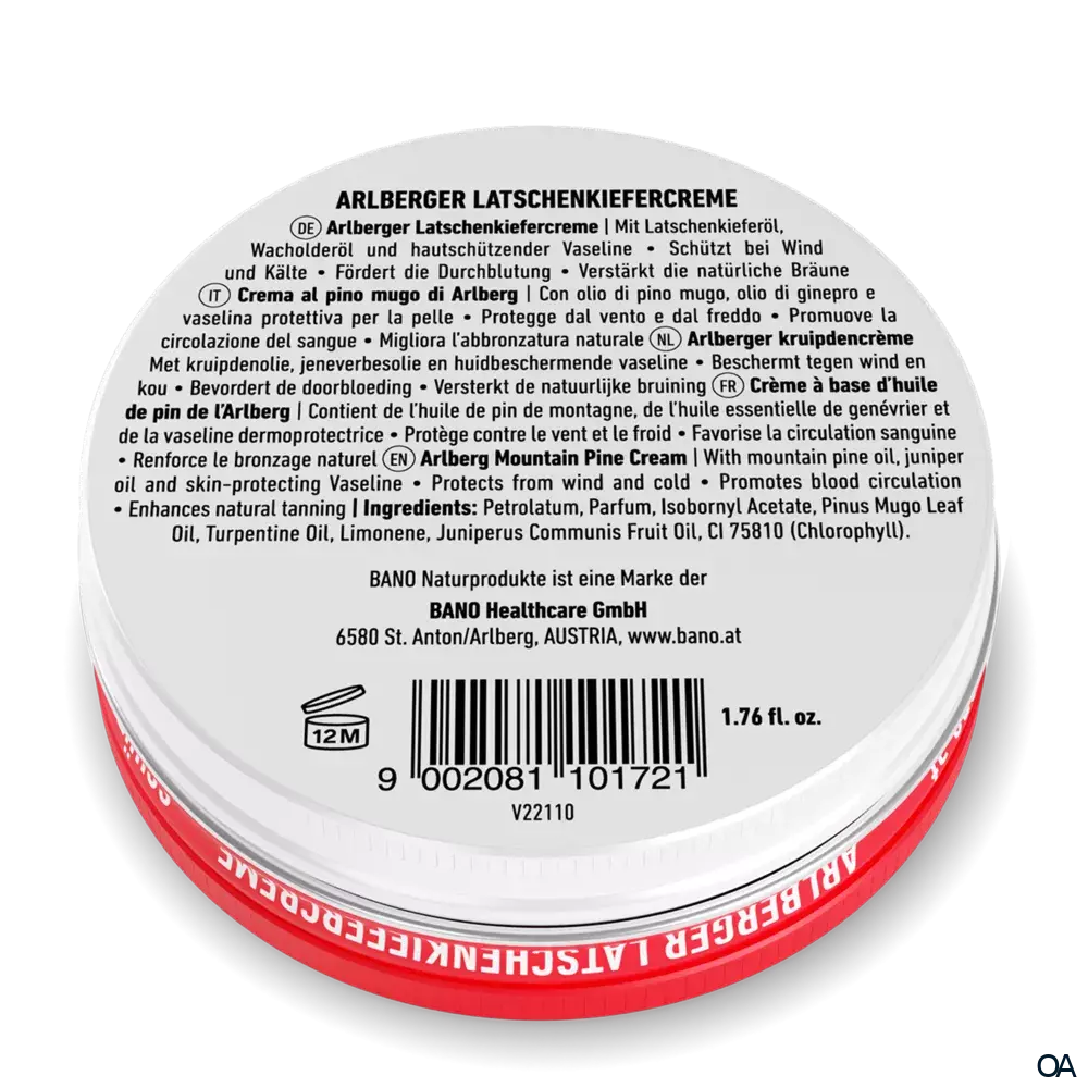 Bano Arlberger Latschenkiefercreme ist der ideale Begleiter für jeden Skifahrer. Schutzcreme gegen Wind und Kälte.