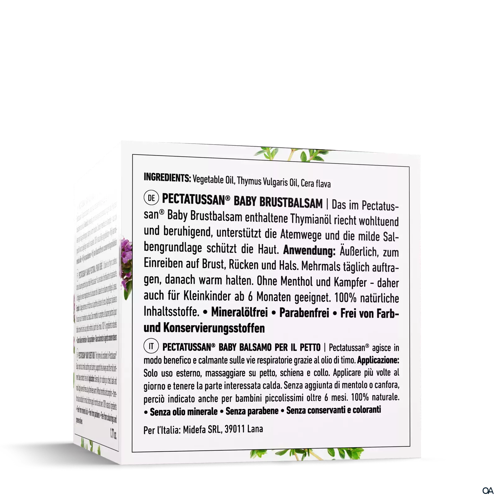 - Unser Arlberger Pectatussan Baby Brustbalsam ist nicht nur für Babys ab 6 Monaten geeignet, sondern auch für ältere Menschen und all diejenigen die sensibel beispielsweise auf Menthol reagieren oder einen milden Geruch bevorzugen.