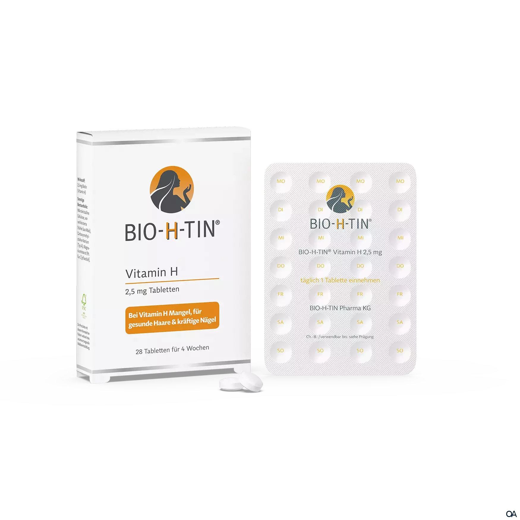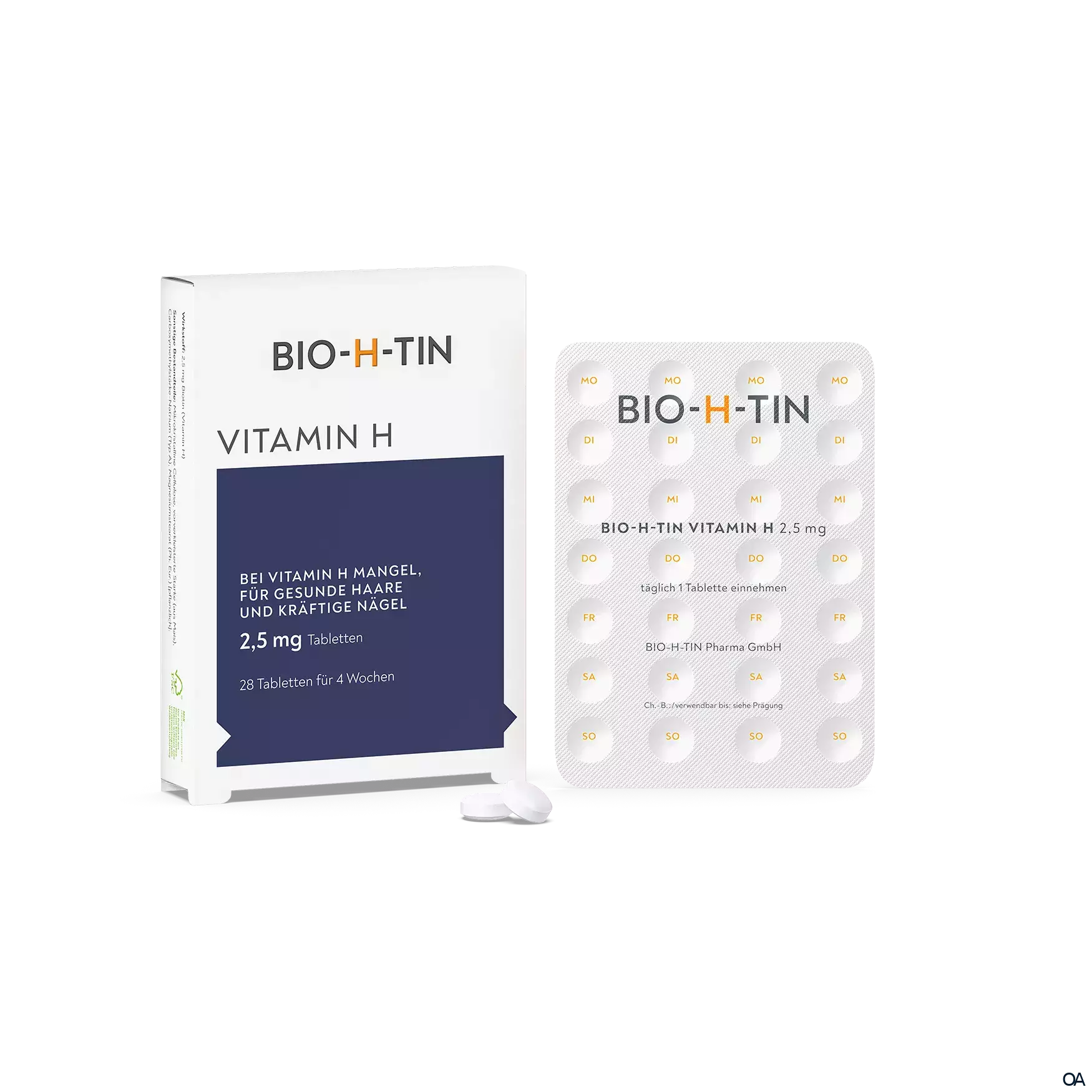 BIO-H-TIN® Vitamin H 2,5mg Tabletten ist ein rezeptfreies Arzneimittel mit Vitamin H zur Behandlung von Biotin-Mangel. Sorgt für normales gesundes Haar und kräftige Nägel.