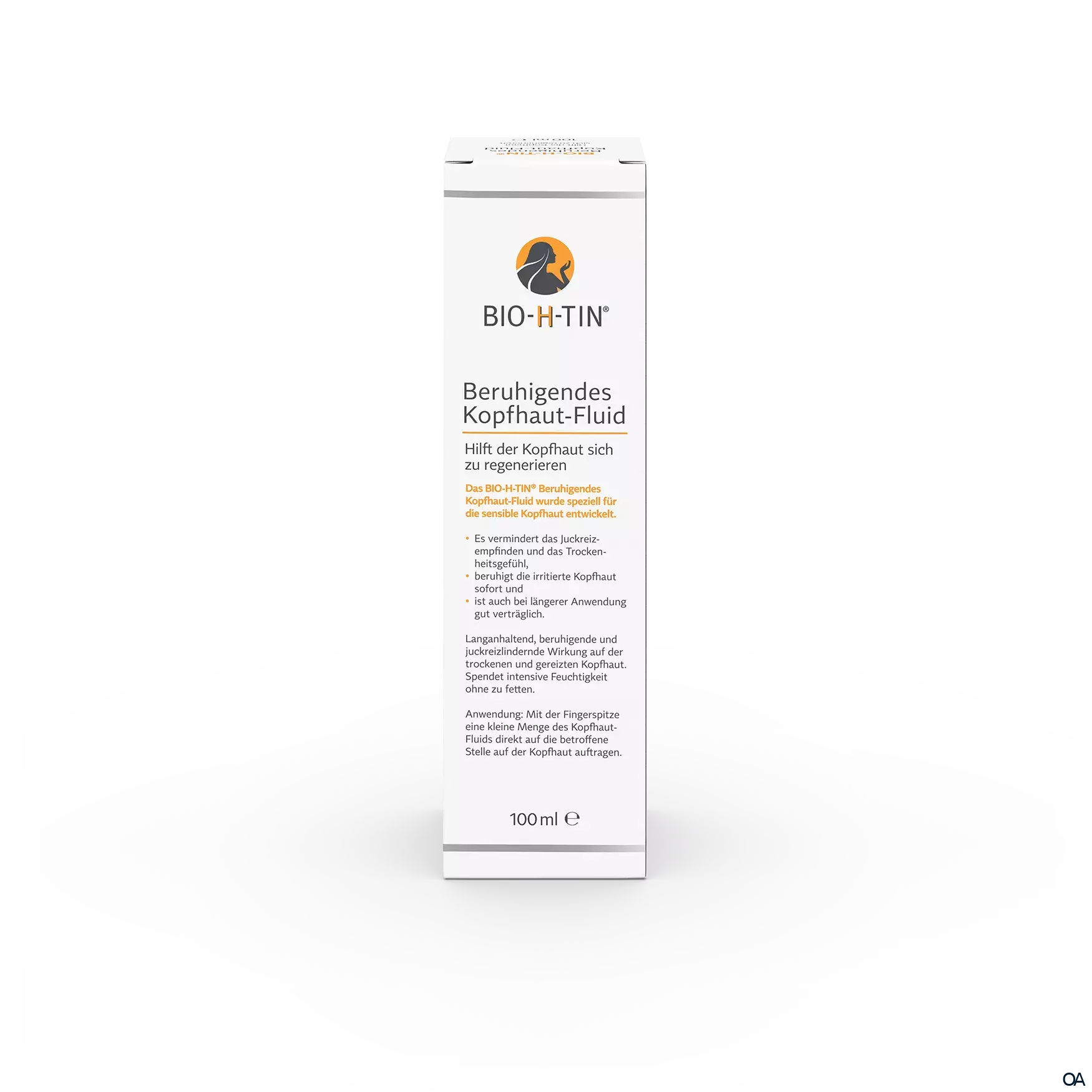 - Hautberuhigende Inhaltsstoffe und Vitamin H (Biotin) fördern beim BIO-H-TIN® Beruhigenden Kopfhaut-Fluid die optimale Versorgung der Hautschutzbarriere der Kopfhaut. Unangenehmes Kopfhautjucken wird reduziert.