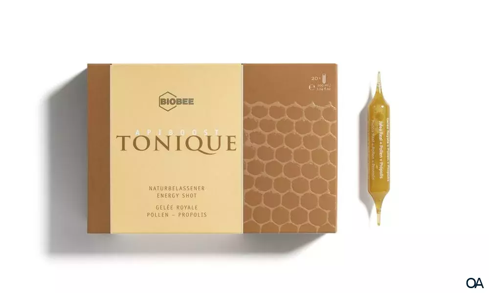 Entdecken Sie BIOBEE APIBOOST Tonique Trinkampullen, ein einzigartiges Produkt aus der Kraft der Biene. Mit Inhaltsstoffen wie Propolis, Gelée Royale und Pollen unterstützt es Ihr Immunsystem, unterstützt Ihre Energie und trägt zu Ihrem Wohlbefinden bei.