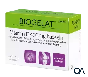 BIOGELAT® Vitamin E 400 mg Kapseln eignen sich zur diätetischen Behandlung von entzündlich-rheumatischen Gelenksbeschwerden (aktive Arthrose und Arthritis). Vitamin E trägt dazu bei, die Zellen vor oxidativem Stress zu schützen.