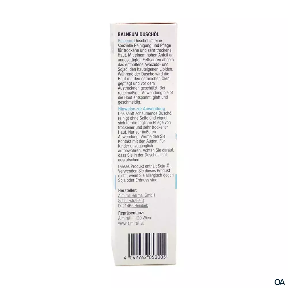 - Hinweise: Verwenden Sie nach dem Duschöl keine Seifen oder Shampoos, da diese den feuchtigkeitsspendenden Fettfilm erneut zerstören würden. Verwenden Sie dieses Produkt nicht, wenn Sie allergisch gegen Soja oder Erdnuss sind.