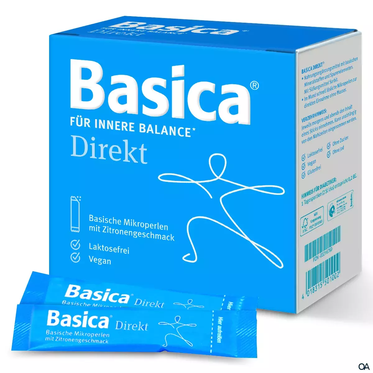 Basica Direkt Sticks sind ein Nahrungsergänzungsmittel mit basischen Mineralstoffen und Spurenelementen. Mit Süßungsmittel Sorbit. Basische Mikroperlen zur schnellen Einnahme ohne Wasser im Büro oder auf Reisen.