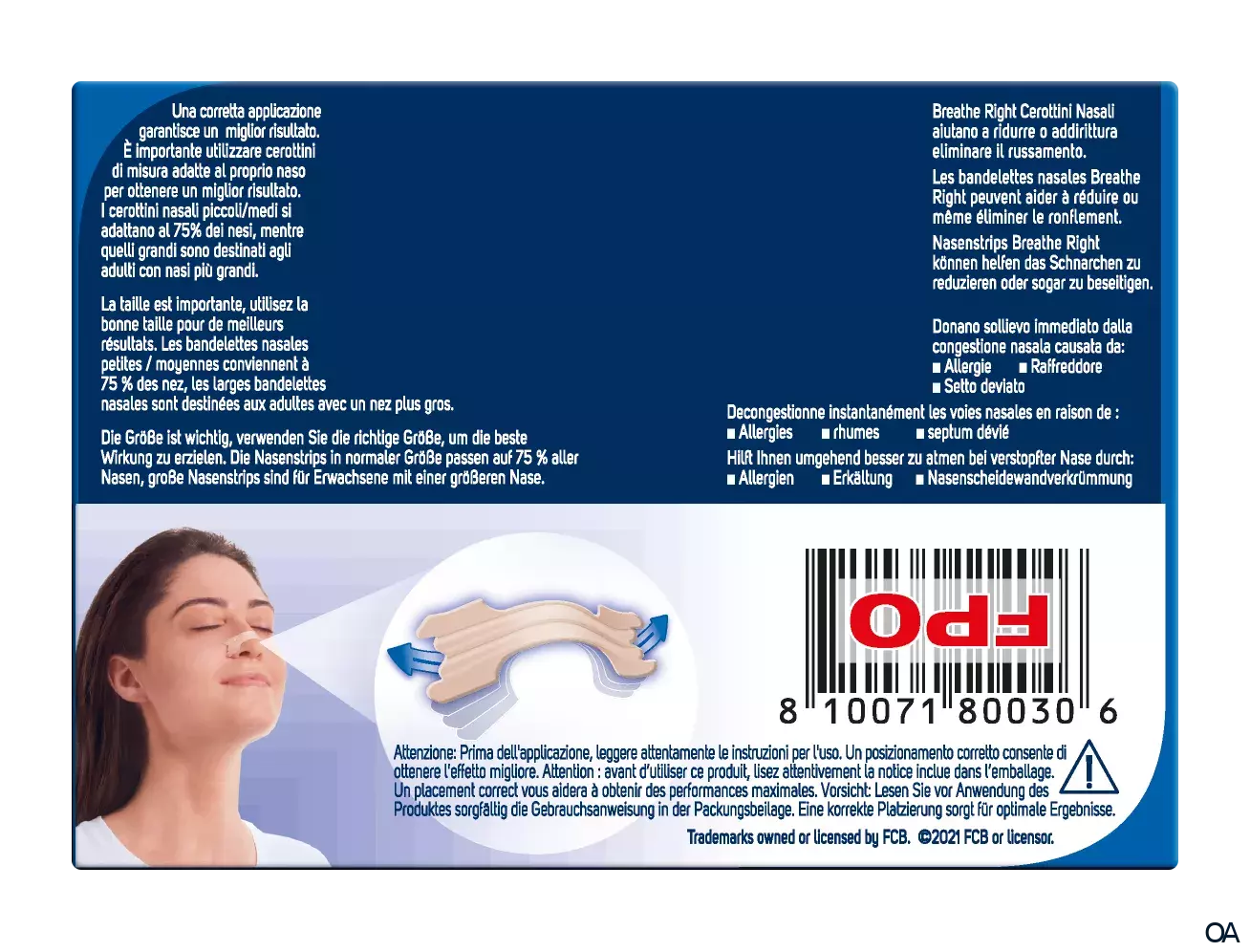 Breathe Right® Nasenpflaster sind flexible, federartige Bänder, die Ihre Nasenflügel sanft anheben und öffnen, den Luftstrom durch die Nase verbessern und somit das Atmen erleichtern.