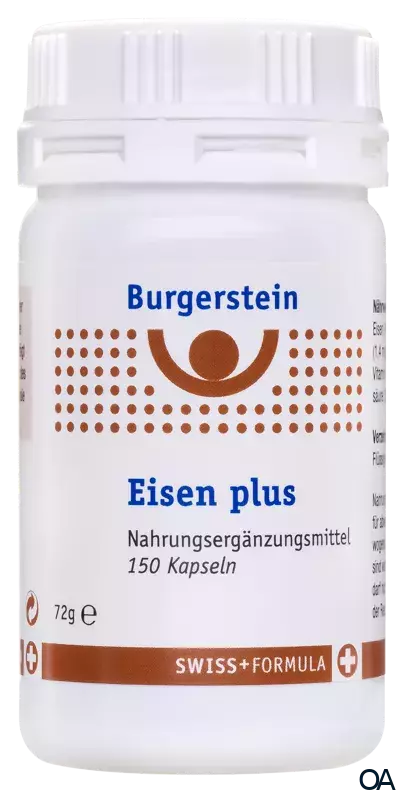 Burgerstein Eisen plus enthält organisches Eisen sowie Kupfer ergänzt mit den Vitaminen A, B1, B6, B12 sowie Pantothensäure und Folsäure. Burgerstein Eisen plus ist gut verträglich und wird sinnvollerweise regelmäßig und langfristig eingenommen. Das enthaltene Vitamin C erhöht die Eisenaufnahme und Kupfer trägt zu einem normalen Eisentransport im Körper bei.