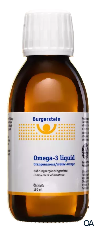 Omega-3-Fettsäuren zählen u.a. zu den lebenswichtigen Inhaltsstoffen unserer Nahrung, da unser Körper sie nicht selbst herstellen kann. Omega-3-Fettsäuren sind vor allem in Fisch und Fischprodukten enthalten. Wenn Fisch aber nicht am ständigen Speiseplan steht, kann der Körper einen Mangel an diesen Fettsäuren aufweisen. Die mehrfach ungesättigten Fettsäuren, die im Omega-3 liquid Fischöl (bei Burgerstein ohne Fischgeschmack - aber mit natürlichem Orangenaroma aus nachhaltigem Fischfang) vorhanden sind, haben eine wichtige Bedeutung für unseren Körper.