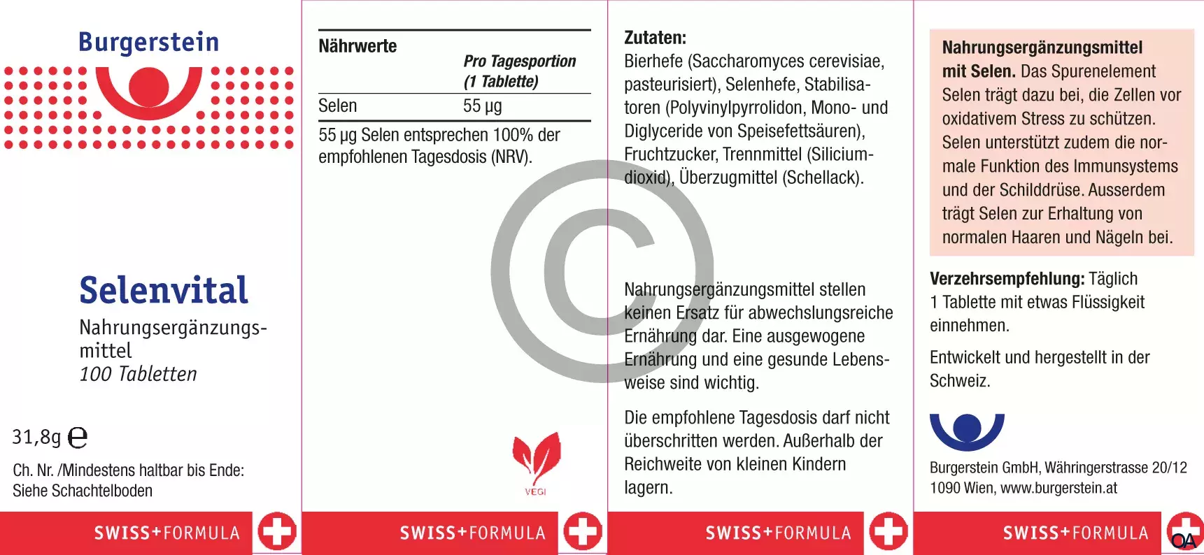 Burgerstein Selenvital enthält pro Tagesportion 55 µg gut verwertbares, organisches Selen. Selen ist ein Spurenelement, das in vielen Nahrungsmitteln in kleinsten Mengen vorkommt. Besonders Alpenländer haben selenarme Böden und eine ausreichende Selenversorgung ist damit schwierig.