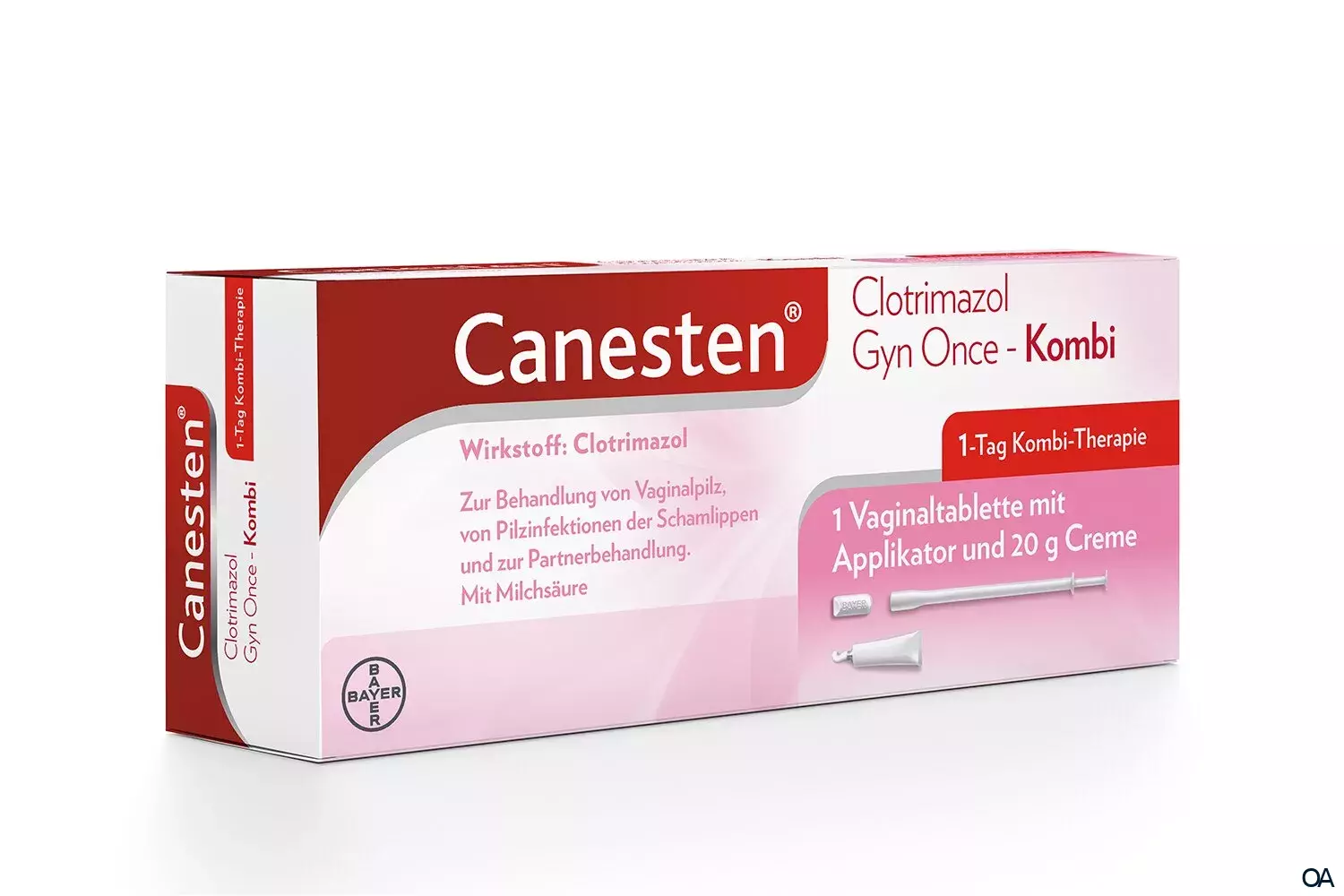 Canesten Clotrimazol Gyn Once - Kombi Vaginaltablette und Creme gehören zu den Antimykotika (Mittel gegen Pilzerkrankungen) zur Behandlung von Pilzinfektionen der Scheide. Die Creme kann auch zur Behandlung von Pilzinfektionen von Eichel und Vorhaut verwendet werden. Die Vaginaltablette wird einmalig in die Scheide eingeführt, die Creme dient zur äußeren Behandlung von erkrankten Hautstellen.