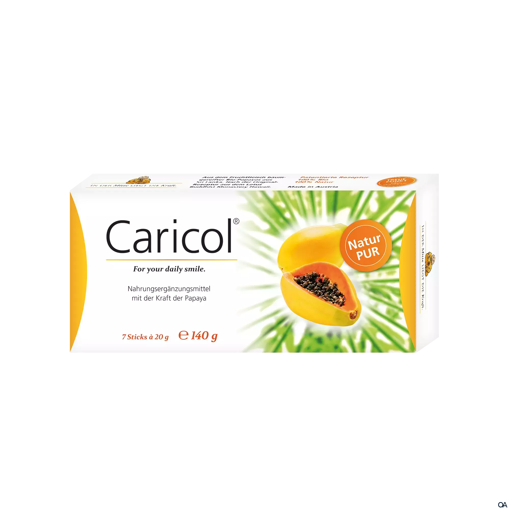 Caricol® ist ein rein natürliches Produkt, das aus vollreifen Papayafrüchten hergestellt wird. Das Fruchtfleisch der Papaya enthält eine große Menge an Papain, einem Enzym, das die Verdauung unterstützt, indem es die Proteine aus unserer Nahrung aufspaltet. Durch ein spezielles patentiertes Herstellungsverfahren ist die Papain-Aktivität in Caricol® viermal höher als in rohem Papayapüree. Darüber hinaus enthält die Papaya viele Antioxidantien, Vitamine und Mineralstoffe, die unserem Körper zugutekommen.