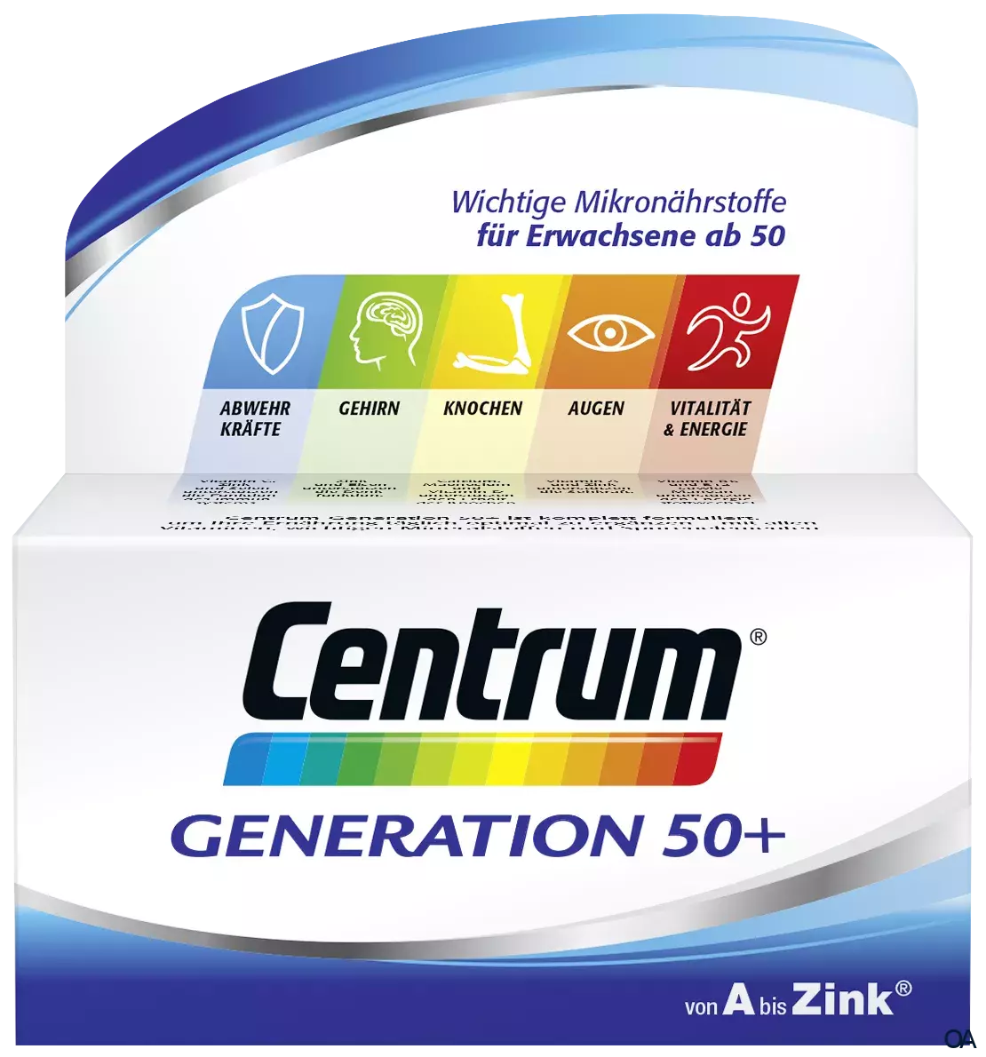 Die Mikronährstoff-Formel Centrum „Generation 50+“ ist speziell an die Nährstoffbedürfnisse von Best Agern angepasst. Somit ergänzt Centrum „Generation 50+“ die Ernährung von Best Agern sinnvoll und bildet eine gesunde Basis für ihr Wohlbefinden.