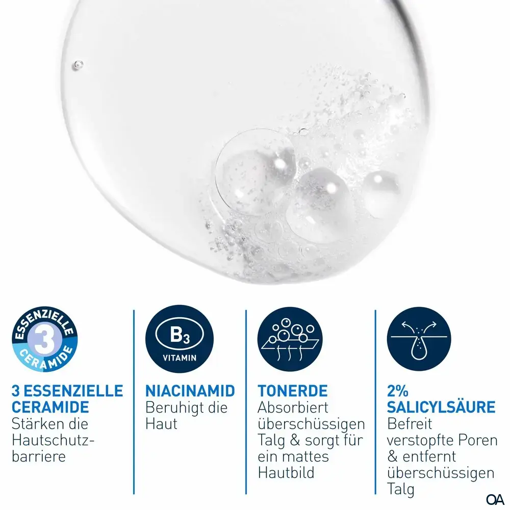 CeraVe Porentiefe Reinigung für empfindliche und zu Akne neigende Haut Die Porentiefe Reinigung von CeraVe befreit empfindliche Gesichtshaut sanft von überschüssigem Talg und wirkt Unreinheiten entgegen. Sie enthält Niacinamid und Salicylsäure, die abgestorbene Hautzellen entfernt und einer Verstopfung der Poren vorbeugt. Der Reinigungsschaum von CeraVe entfernt überschüssiges Öl durch den Reinigungsprozess und wurde speziell für fettige Haut entwickelt, die zu Unreinheiten und Akne neigt. Dabei entfernt die Reinigung überschüssigen Talg und trocknet die Haut nicht aus. Essenzielle Ceramide tragen zur Stärkung der Hautschutzbarriere bei.