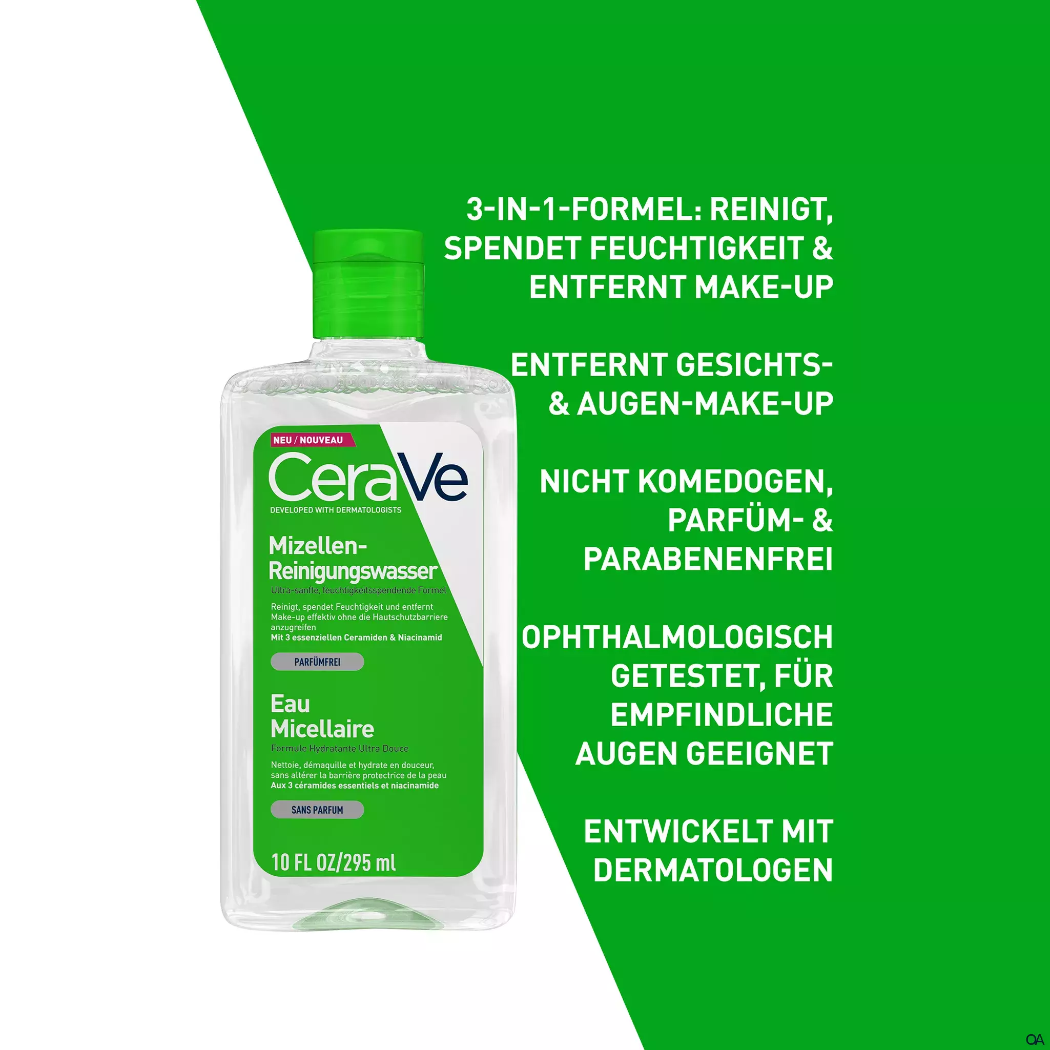 CeraVe Mizellen-Reinigungswasser: feuchtigkeitsspendende, sanfte Gesichtsreinigung für alle Hauttypen Das Mizellen-Reinigungswasser von CeraVe befreit die Gesichtshaut zuverlässig von Make-up, auch Augen-Make-up, reinigt dabei sanft die Haut und unterstützt die Hautschutzbarriere. Beruhigendes Mizellen Gesichtswasser Die Reinigung von CeraVe mit Mizellenwasser verbindet Gesichtsreinigung mit sanfter Pflege, die die Haut nicht austrocknet. Die Formel mit Niacinamid spendet intensiv Feuchtigkeit und wirkt hautberuhigend. Drei essenzielle Ceramide unterstützen die natürliche Funktion der Hautschutzbarriere.