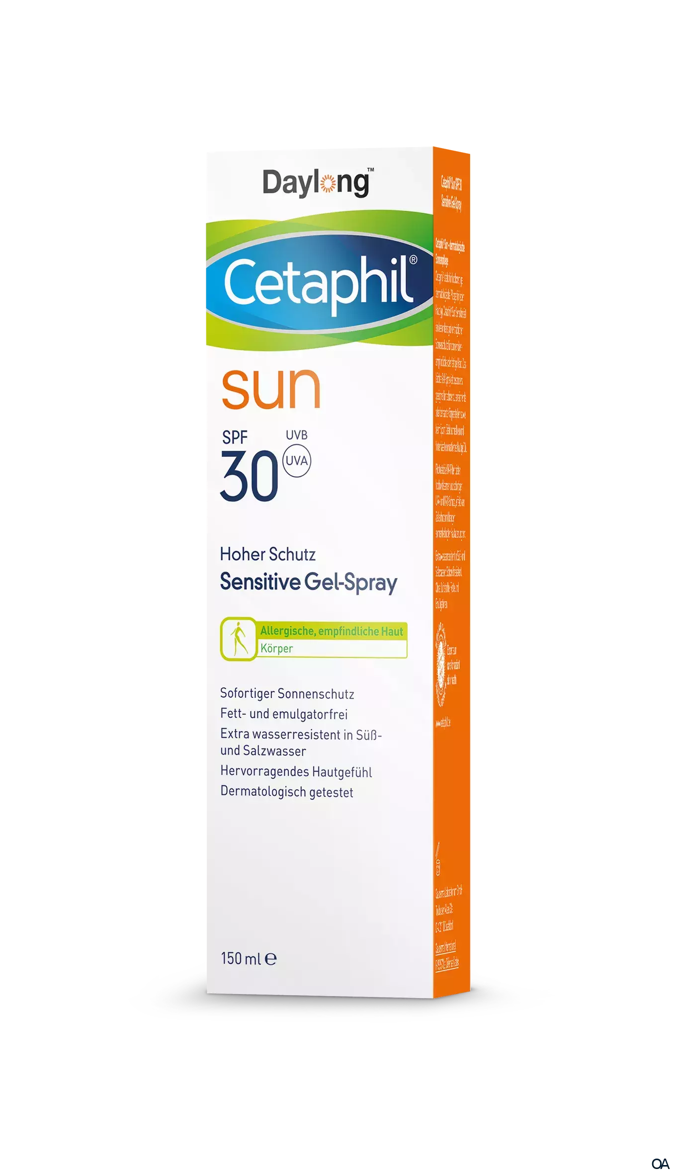 Cetaphil® Sun Daylong™ Sensitive Gel-Spray SPF 30 ist besonders geeignet für zu Sonnenallergie neigende sowie fettige Haut. Es enthält weder Emulgatoren noch Fette, die in Kombination mit UVA-Strahlung die häufigsten Auslöser von Mallorca-Akne sind. Das leichte, fettfreie Gel-Spray lässt sich gut verteilen, zieht schnell ein und klebt nicht. Das Gel-Spray pflegt die Haut zusätzlich mit Vitamin E und sorgt für ein angenehmes Hautgefühl.