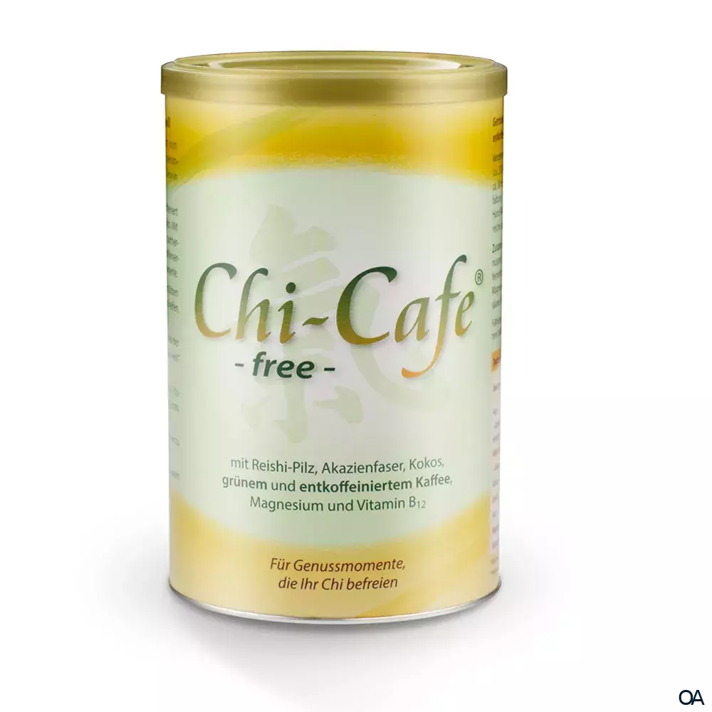 - Chi-Cafe free ist entkoffeiniert, bietet volles Kaffee-Aroma und ist zu jeder Tageszeit ein Genuss. Mit der zartherben Note des Reishi-Pilzes, dem cremigen Geschmack aus Kokosmilch sowie entkoffeiniertem und grünem Kaffee sorgt Chi-Cafe free für echte Glücks- und Genussmomente.