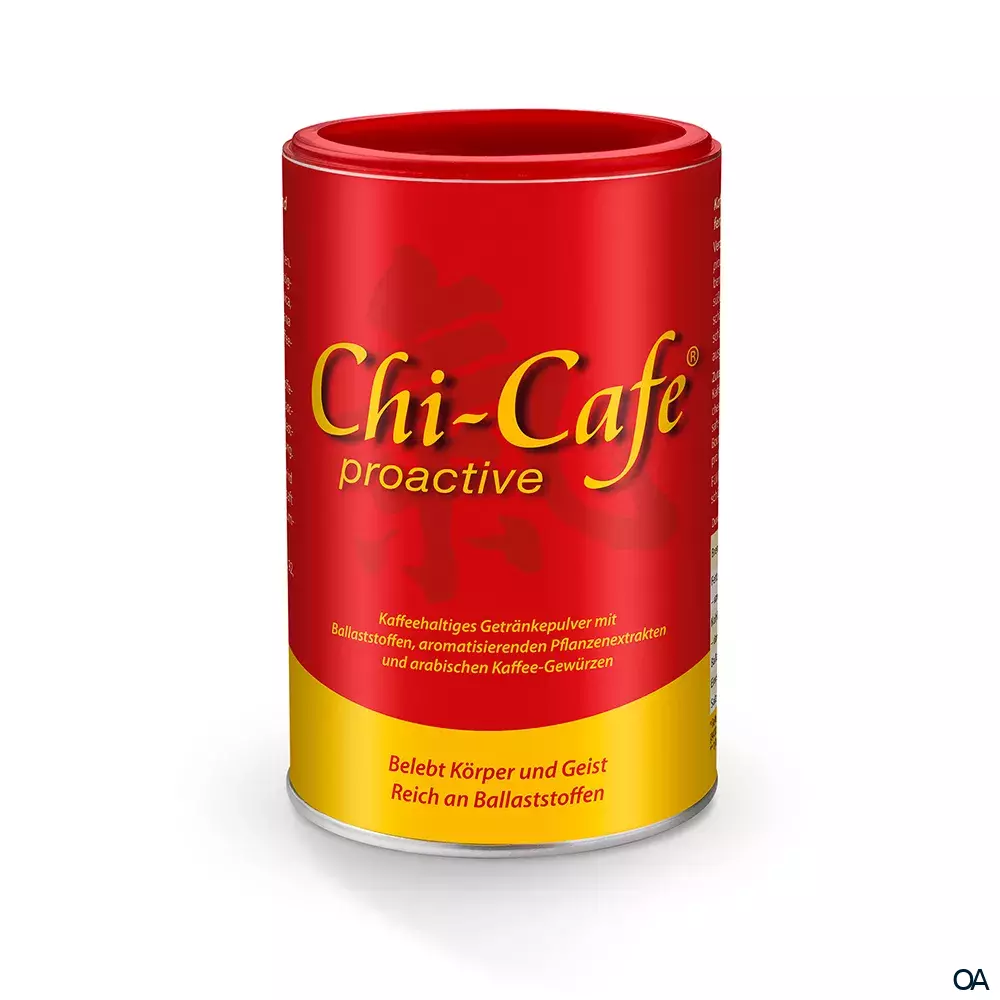 Chi-Cafe proactive ist ein kaffeehaltiges Getränkepulver mit Ballaststoffen, aromatisierenden Pflanzenextrakten und arabischen Kaffee-Gewürzen. Belebt den Körper & Geist und trägt zu einem guten Bauchgefühl bei.